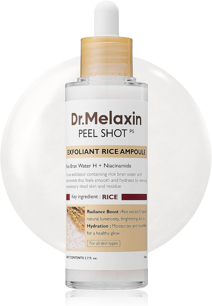 Dr. Melaxin White and Black Rice Peeling Ampoule, Soft Exfoliating Face and Body Scrub Dead Skin Cells Remover for All Skin Types